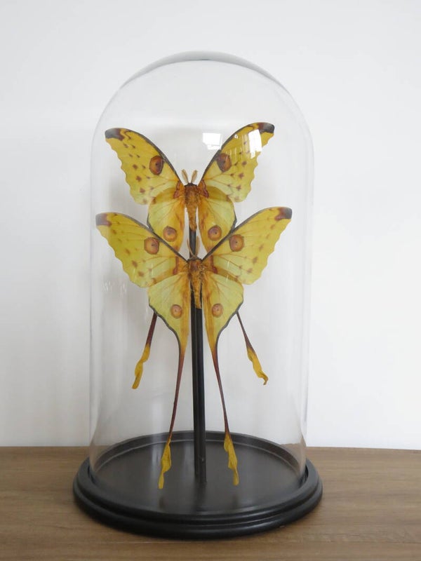 Glazen stolp met 2 reuzen komeetstaartvlinder