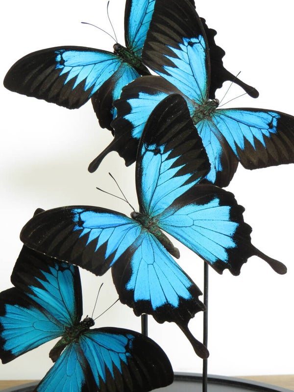 Glazen stolp met 4 Papilio ulysses uit Ambon, Indonesië