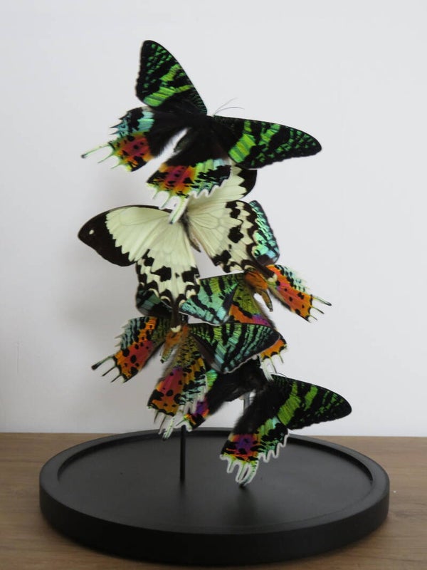 Bevat :4 Urania od Sunsetmoth en 1 zwart witte page, allen uit Madagaskar