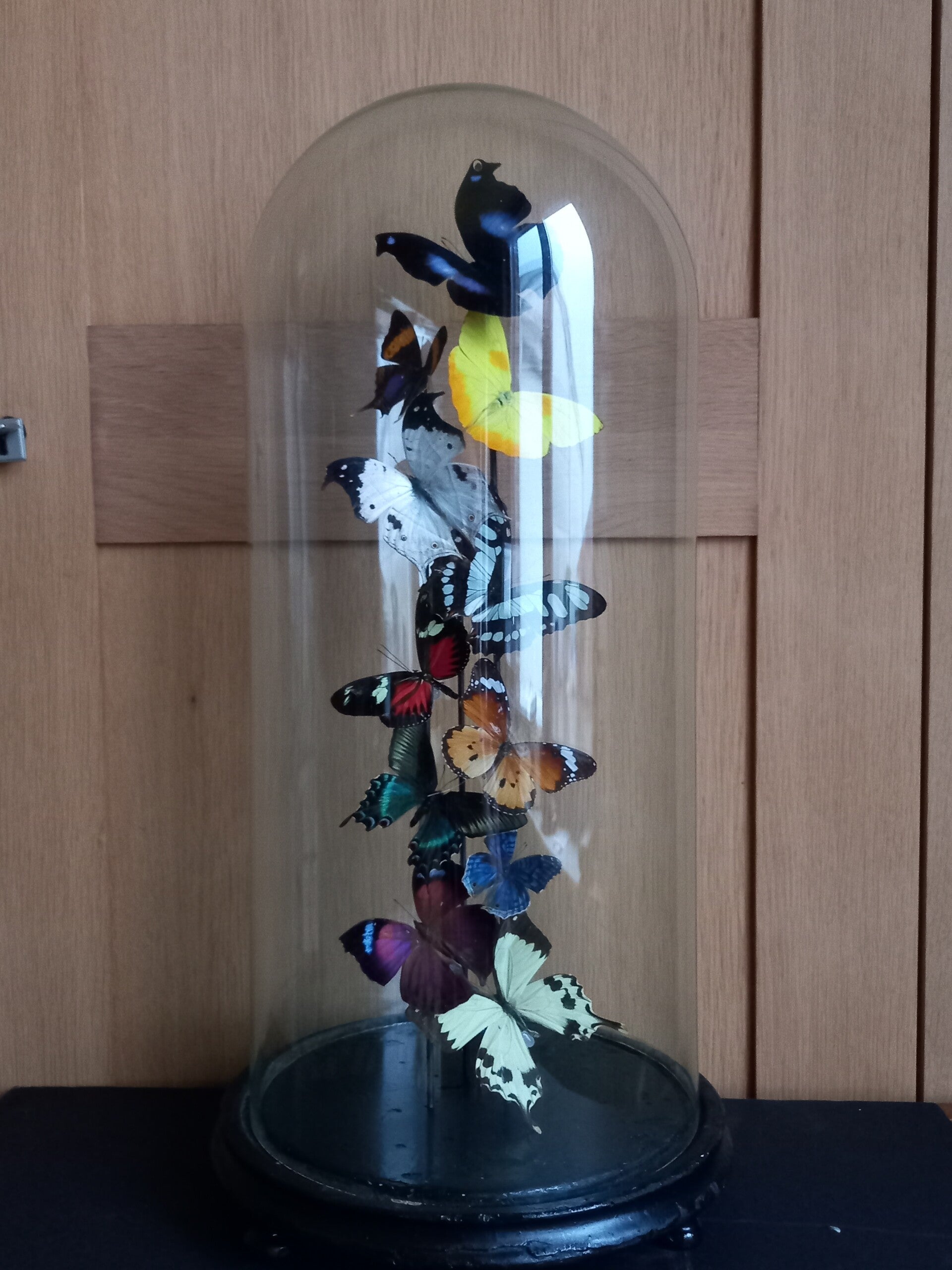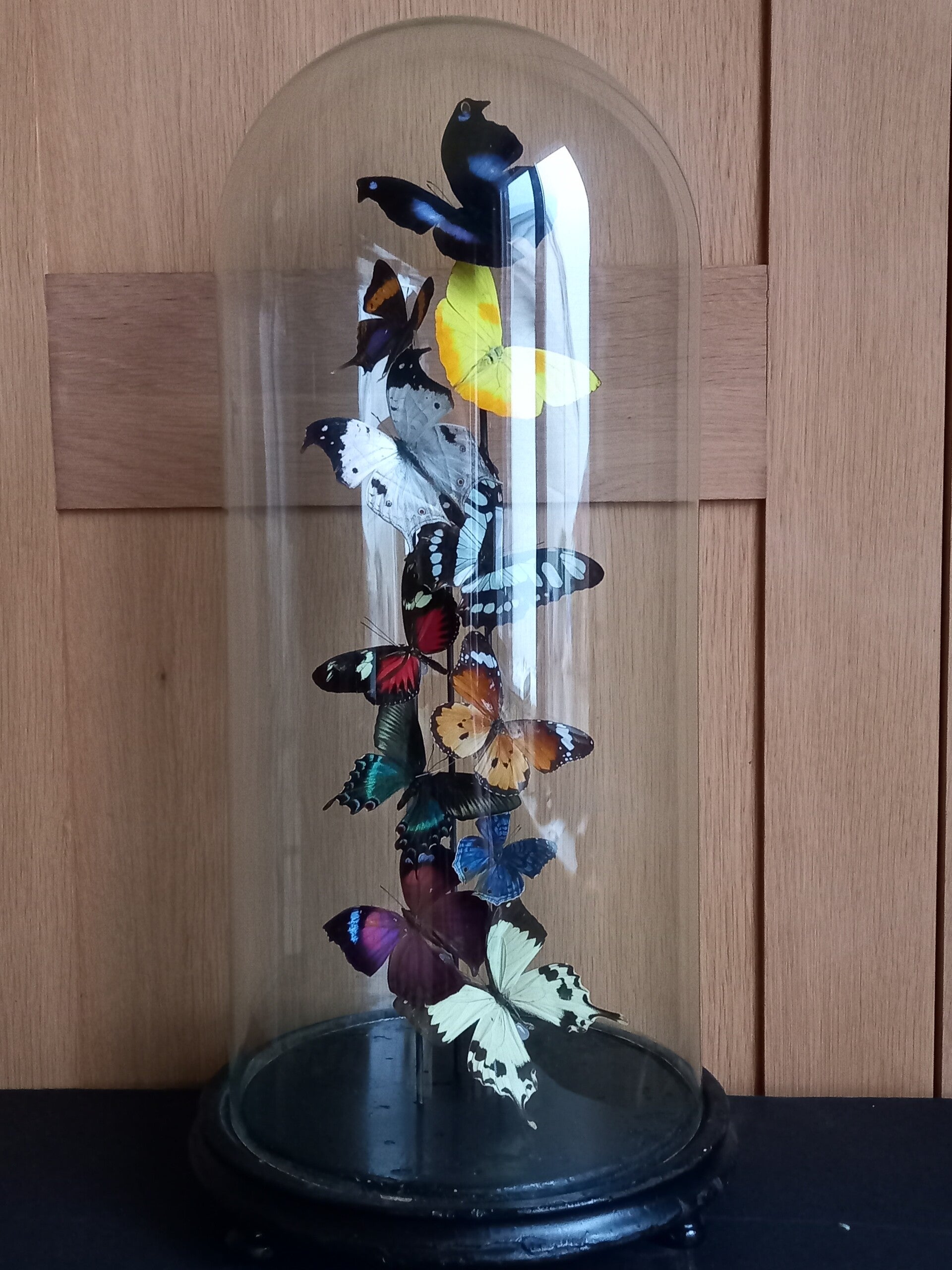 Antieke stolp met maar liefst 11 verschillende soorten vlinders.